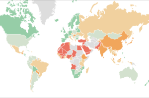 Maar ook elders in de wereld is het droevig gesteld met de vrouwenrechten. Ter illustratie een kaartje over gelijkheid tussen mannen en vrouwen wereldwijd.