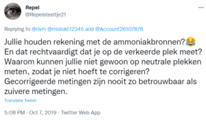 Hoe het RIVM verder gaat reageren? Ze zullen wel zeggen dat het een misverstand is, dat de twitteraar het niet goed begrepen heeft, of dat het Waterschap iets heel anders bedoelde. Feit blijft staan dat er naast een rioolput een ammoniakmeetpunt is aangebracht. En dat dit onwetenschappelijk en onbetrouwbaar is.